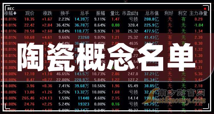 陶瓷概念股有三環(huán)集團(tuán)、中材科技、長盈精密、順絡(luò)電子、國瓷材料、道氏技術(shù)、成飛集成、勝利精密、滄州明珠、大東南等13家上市公司。陶瓷概念龍頭股是哪幾只?概念庫為您整理陶瓷概念龍頭股的相關(guān)信息。