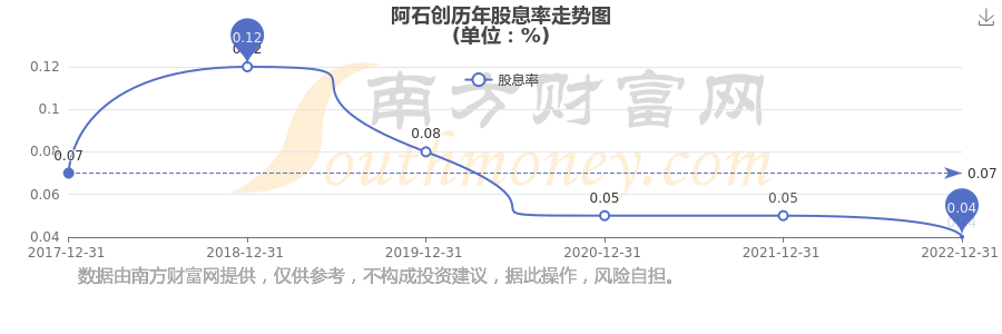 近年阿石創(chuàng)年度股息率走勢如下圖: