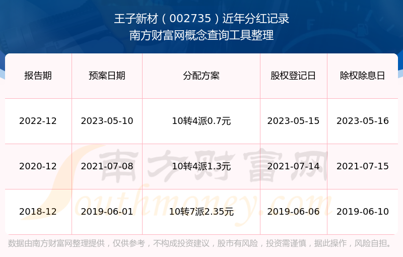 王子新材最新一次公布的分紅方案:10轉(zhuǎn)4派0.7元。