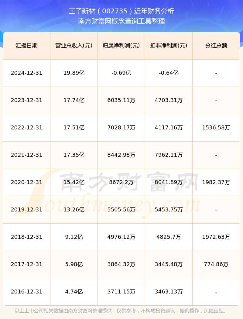2024年報(bào)顯示,王子新材實(shí)現(xiàn)營收19.89億,同比增長12.15%;凈利潤-6850.25萬,同比增長-213.51%;毛利率16.81%。