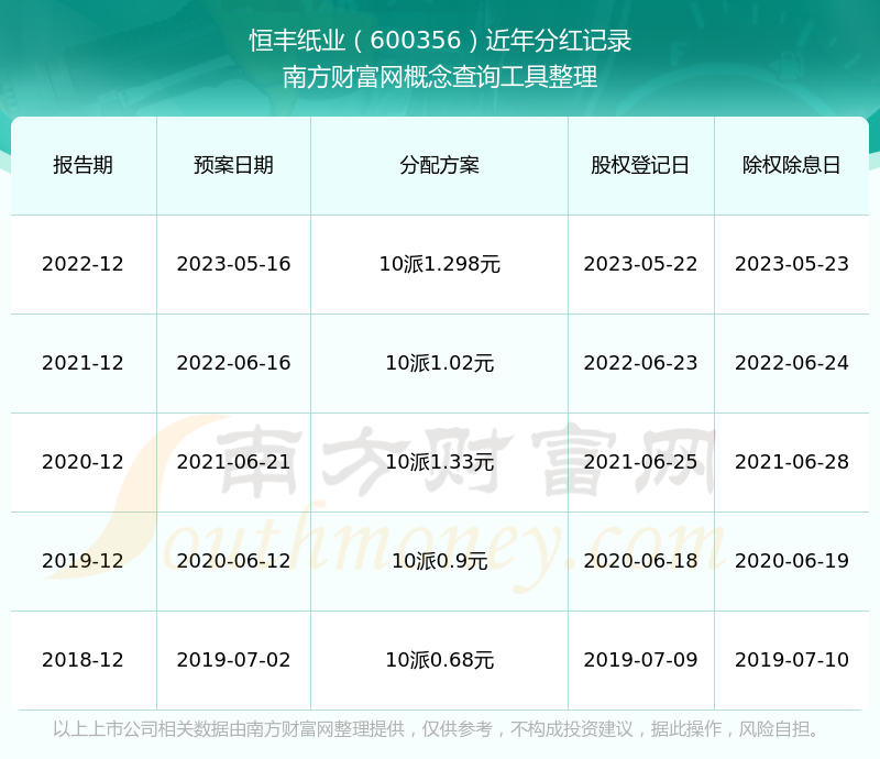 恒豐紙業(yè)最新一次公布的分紅方案:10派1.298元。