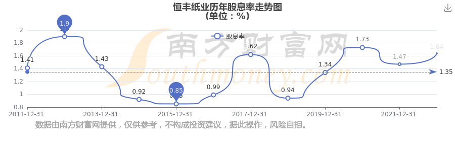 近年恒豐紙業(yè)年度股息率走勢如下圖: