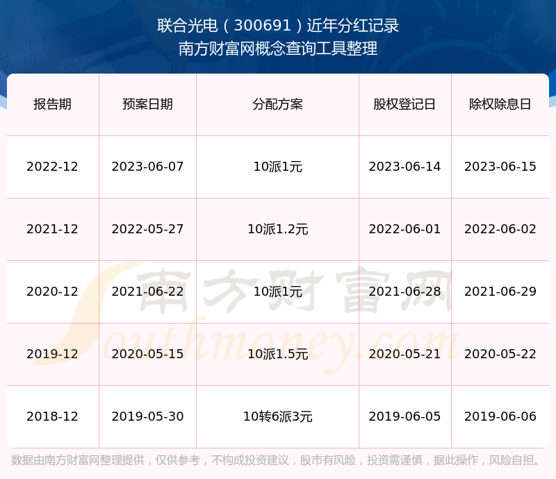 二、聯(lián)合光電300691行業(yè)分紅排名