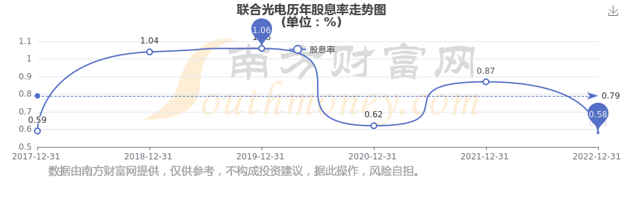 近年聯(lián)合光電年度股息率走勢如下圖:
