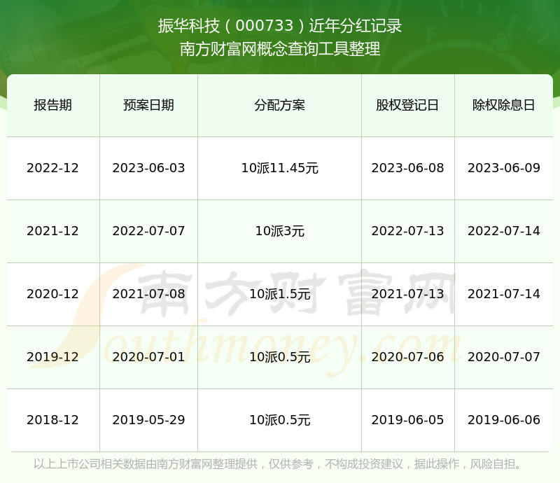 振華科技最新一次公布的分紅方案:10派11.45元。
