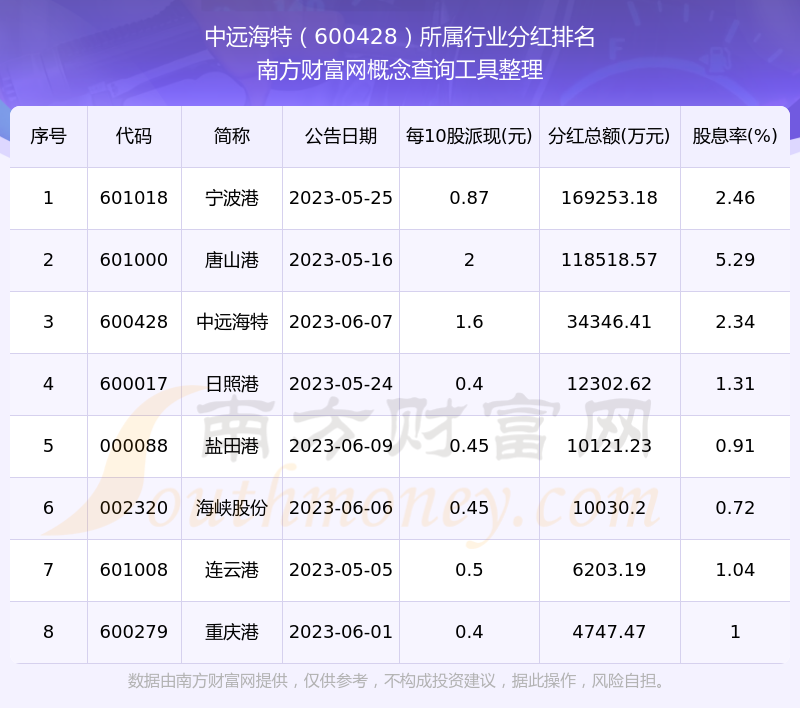二、中遠(yuǎn)海特600428行業(yè)分紅排名