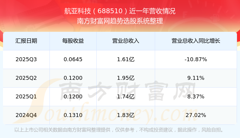財報顯示,2025年第三季度航亞科技營收1.61億元,同比增長-10.87%,凈利潤1665.65萬元,同比增長-34.78%。
