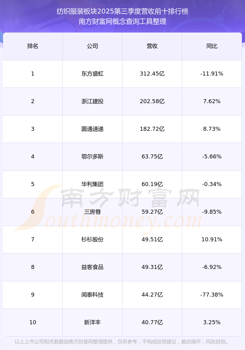 按照南方財(cái)富網(wǎng)概念查詢(xún)工具統(tǒng)計(jì),該股所屬板塊為紡織服裝板塊,該板塊共有157只股票,臺(tái)華新材2025第三季度營(yíng)收在該板塊中排名為第29名,該板塊2025第三季度營(yíng)收排名前十的股票如下表: