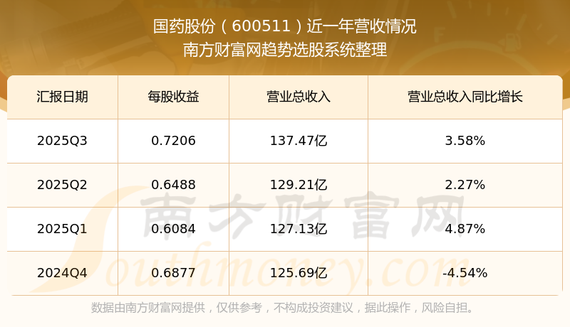 國(guó)藥股份披露了2025年第三季度財(cái)報(bào)。報(bào)告顯示,國(guó)藥股份2025年第三季度實(shí)現(xiàn)營(yíng)收137.47億元,同比3.58%;歸母凈利潤(rùn)5.44億元,同比13.1%。
