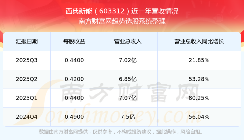 于2025年第三季度,西典新能披露了其業(yè)績表現(xiàn),其中主營業(yè)務(wù)收入7.02億元,相較于去年同期21.85%。此外,公司歸屬于母公司的凈利潤為7183.75萬元,同比增長了27.77%。在扣除所有非經(jīng)常性損益后,凈利潤7091.77萬元,同比增長27.81%。