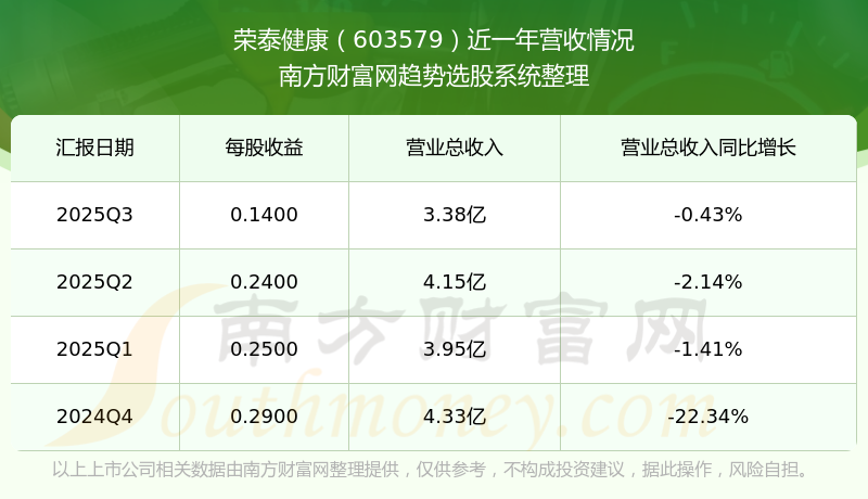 榮泰健康2025年第三季度公司實現(xiàn)營業(yè)收入3.38億元,同比-0.43%;歸母凈利潤2548.48萬元,同比-18.25%。