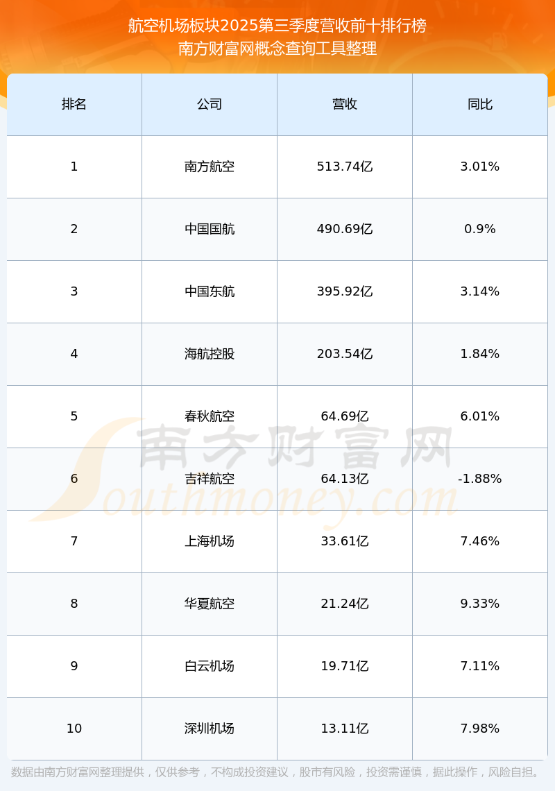 按照南方財富網(wǎng)概念查詢工具統(tǒng)計,該股所屬板塊為航空機場板塊,該板塊共有14只股票,吉祥航空2025第三季度營收在該板塊中排名為第6名,該板塊2025第三季度營收排名前十的股票如下表: