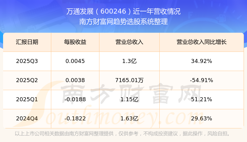 萬通發(fā)展2025年第三季度顯示,公司主營收入1.3億元,同比34.92%;歸母凈利潤824.09萬元,同比122.33%;扣非凈利潤-5096.32萬元,同比-4.71%;