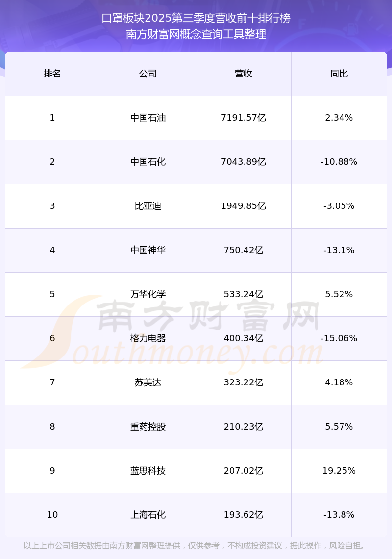 按照南方財(cái)富網(wǎng)概念查詢工具統(tǒng)計(jì),該股所屬板塊為口罩板塊,該板塊共有211只股票,金海高科2025第三季度營收在該板塊中排名為第173名,該板塊2025第三季度營收排名前十的股票如下表:
