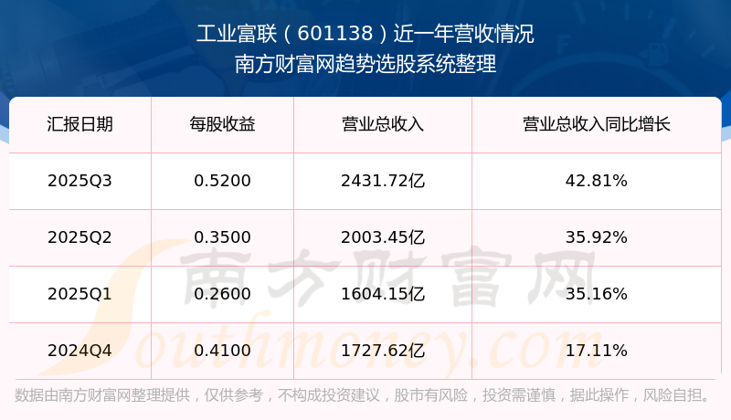 于2025年第三季度,工業(yè)富聯(lián)披露了其業(yè)績(jī)表現(xiàn),其中主營(yíng)業(yè)務(wù)收入2431.72億元,相較于去年同期42.81%。此外,公司歸屬于母公司的凈利潤(rùn)為103.73億元,同比增長(zhǎng)了62.04%。在扣除所有非經(jīng)常性損益后,凈利潤(rùn)99.89億元,同比增長(zhǎng)61.11%。