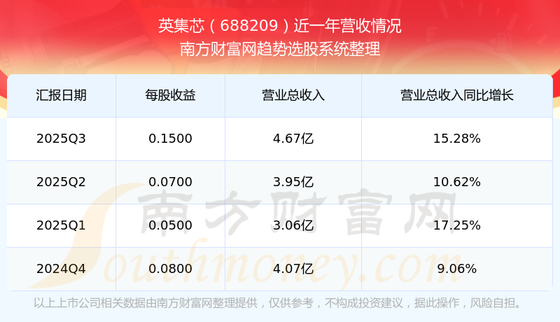 在2025年第三季度,英集芯的業(yè)績表現(xiàn),主營業(yè)務(wù)收入達(dá)到4.67億元,實現(xiàn)了15.28%的同比增長率。同時,公司歸母凈利潤錄得6253.58萬元,同比增長25.09%。