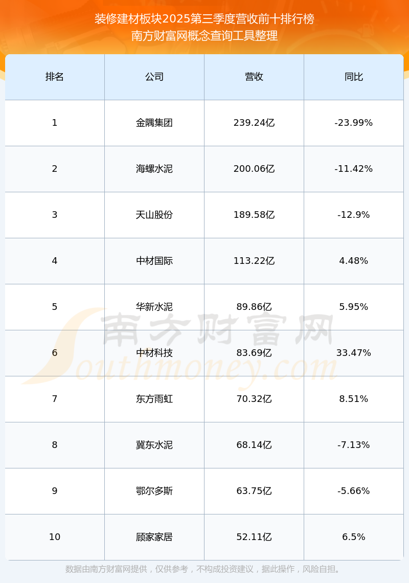 按照南方財(cái)富網(wǎng)概念查詢工具統(tǒng)計(jì),該股所屬板塊為裝修建材板塊,該板塊共有82只股票,恒林股份2025第三季度營(yíng)收在該板塊中排名為第82名,該板塊2025第三季度營(yíng)收排名前十的股票如下表: