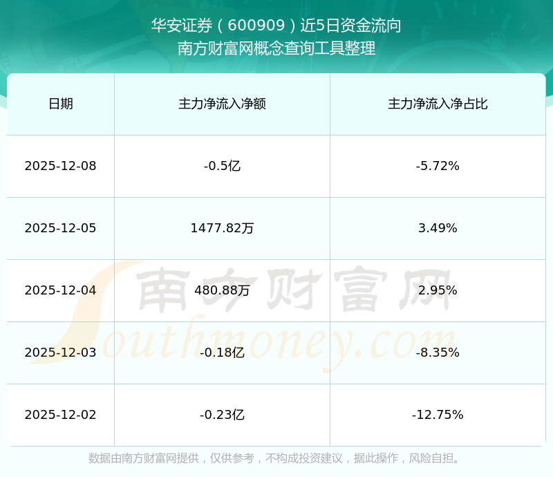 二、華安證券(600909)近期盤面、資金面情況