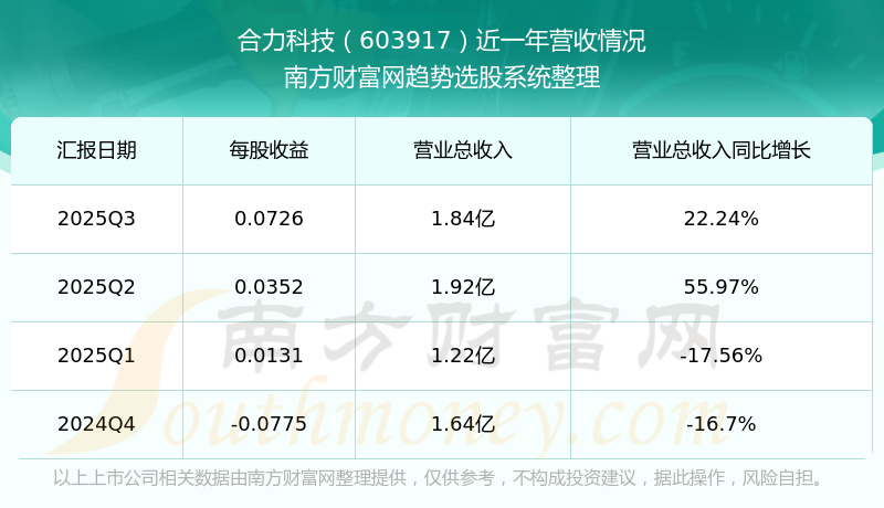 合力科技2025年第三季度公司實(shí)現(xiàn)營(yíng)業(yè)收入1.84億元,同比22.24%;歸母凈利潤(rùn)1480.27萬元,同比1105.62%。