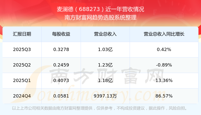 2025年第三季度,麥瀾德營收同比0.42%,凈利潤同比36.71%。
