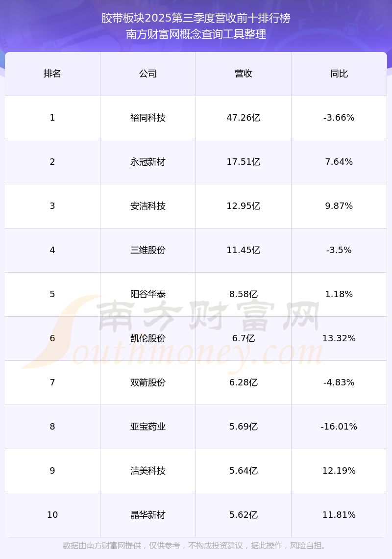 按照南方財(cái)富網(wǎng)概念查詢工具統(tǒng)計(jì),該股所屬板塊為膠帶板塊,該板塊共有16只股票,永冠新材2025第三季度營收在該板塊中排名為第2名,該板塊2025第三季度營收排名前十的股票如下表: