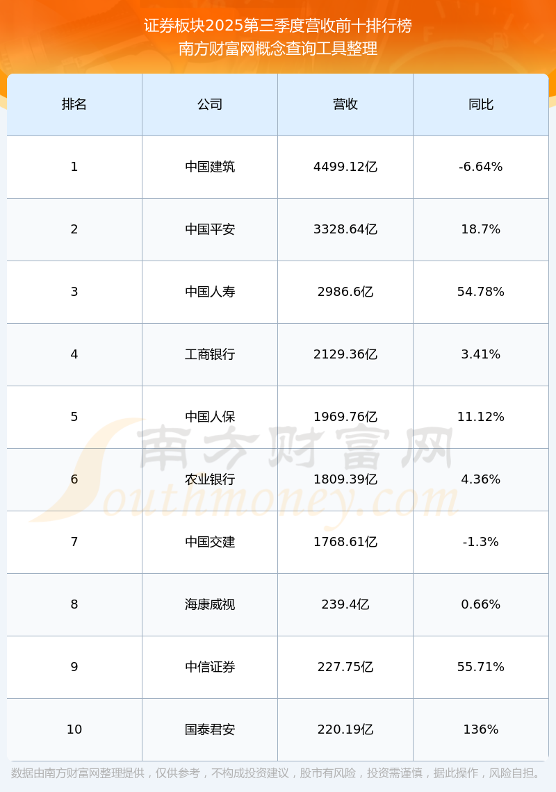 按照南方財富網(wǎng)概念查詢工具統(tǒng)計,該股所屬板塊為證券板塊,該板塊共有65只股票,東興證券2025第三季度營收在該板塊中排名為第38名,該板塊2025第三季度營收排名前十的股票如下表: