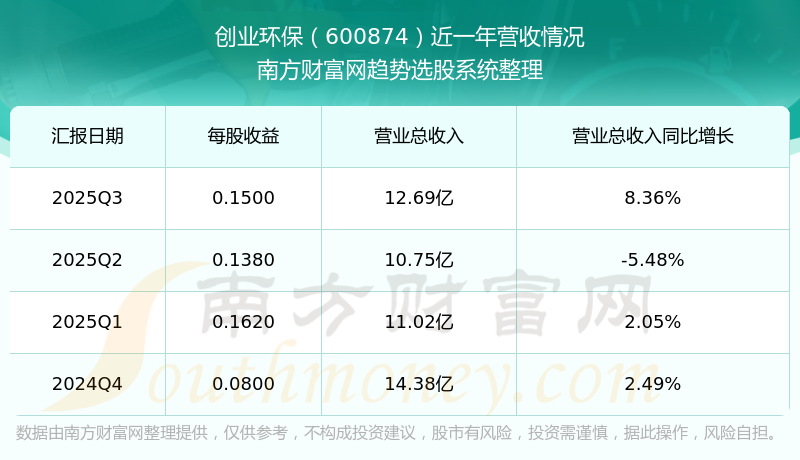 創(chuàng)業(yè)環(huán)保2025年第三季度顯示,公司主營收入12.69億元,同比8.36%;歸母凈利潤2.29億元,同比-10.44%;扣非凈利潤2.01億元,同比-16.09%;