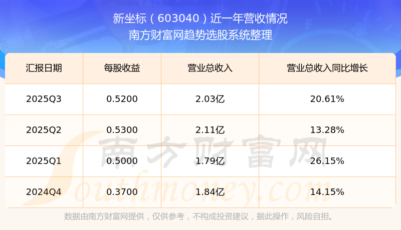 A股上市公司新坐標(biāo)(代碼:603040)發(fā)布2025年第三季度財(cái)報(bào),公司2025年第三季度歸屬于上市公司股東的凈利潤為6742.57萬元,凈利潤同比增長33.82%,環(huán)比增長-10.13%。