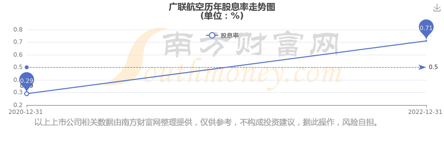近年廣聯(lián)航空年度股息率走勢如下圖:
