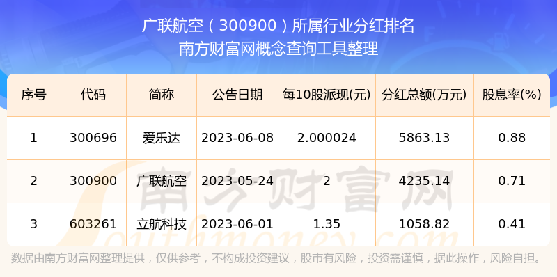 二、廣聯(lián)航空300900行業(yè)分紅排名