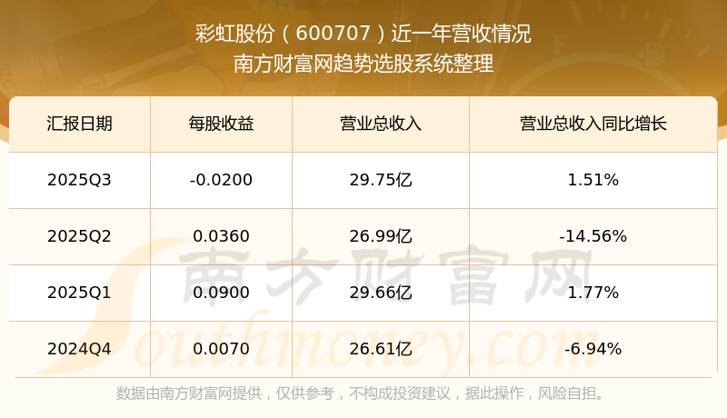 于2025年第三季度,彩虹股份披露了其業(yè)績(jī)表現(xiàn),其中主營(yíng)業(yè)務(wù)收入29.75億元,相較于去年同期1.51%。此外,公司歸屬于母公司的凈利潤(rùn)為-7229.13萬(wàn)元,同比增長(zhǎng)了-123.08%。在扣除所有非經(jīng)常性損益后,凈利潤(rùn)-8511.04萬(wàn)元,同比增長(zhǎng)-132.64%。
