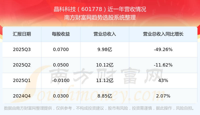 在2025年第三季度,晶科科技的業(yè)績表現(xiàn),主營業(yè)務(wù)收入達(dá)到9.98億元,實(shí)現(xiàn)了-49.26%的同比增長率。同時(shí),公司歸母凈利潤錄得2.33億元,同比增長76.49%。
