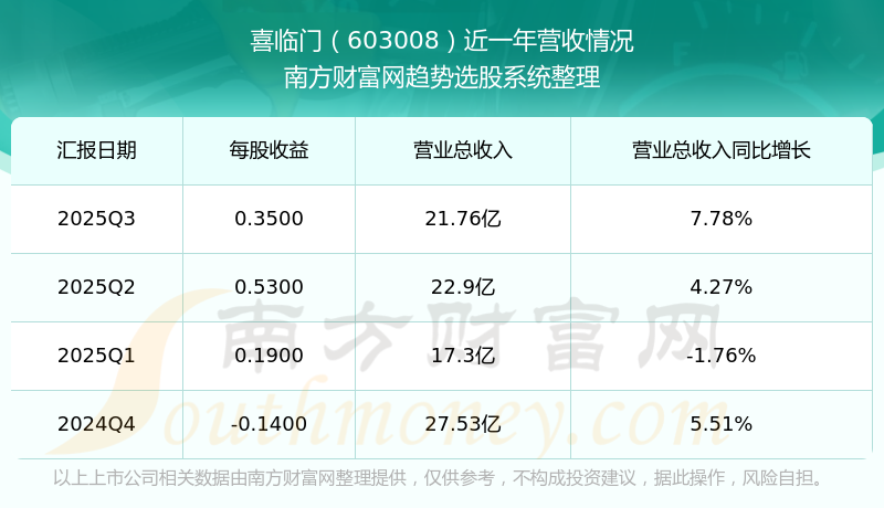 喜臨門股票近一年營收情況如下表: