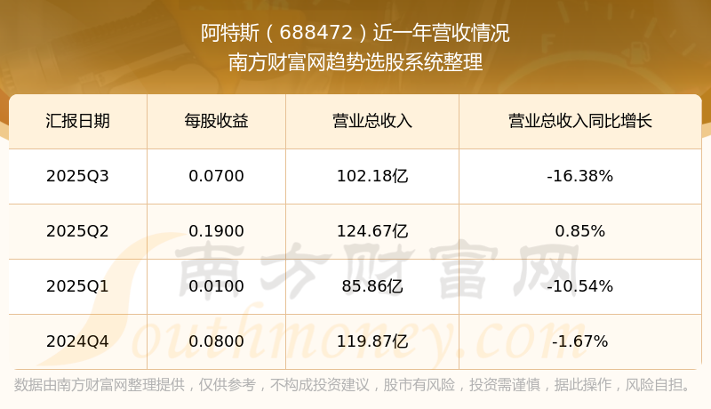 阿特斯2025年第三季度財(cái)報(bào)顯示,公司主營收入102.18億元,同比-16.38%;歸母凈利潤2.58億元,同比-63.96%;扣非凈利潤2.84億元,同比-56.77%;
