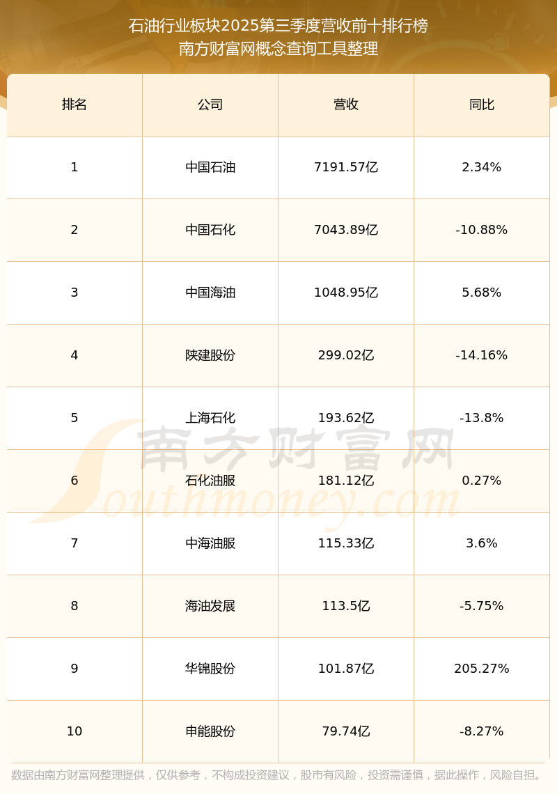 按照南方財(cái)富網(wǎng)概念查詢工具統(tǒng)計(jì),該股所屬板塊為石油行業(yè)板塊,該板塊共有41只股票,洲際油氣2025第三季度營收在該板塊中排名為第30名,該板塊2025第三季度營收排名前十的股票如下表: