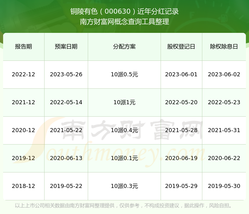 一、銅陵有色(000630)股票分紅記錄