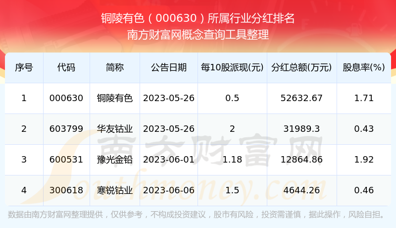 二、銅陵有色000630行業(yè)分紅排名