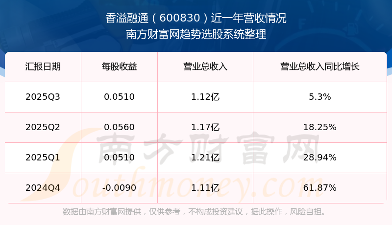 一、香溢融通(600830)股票營收情況