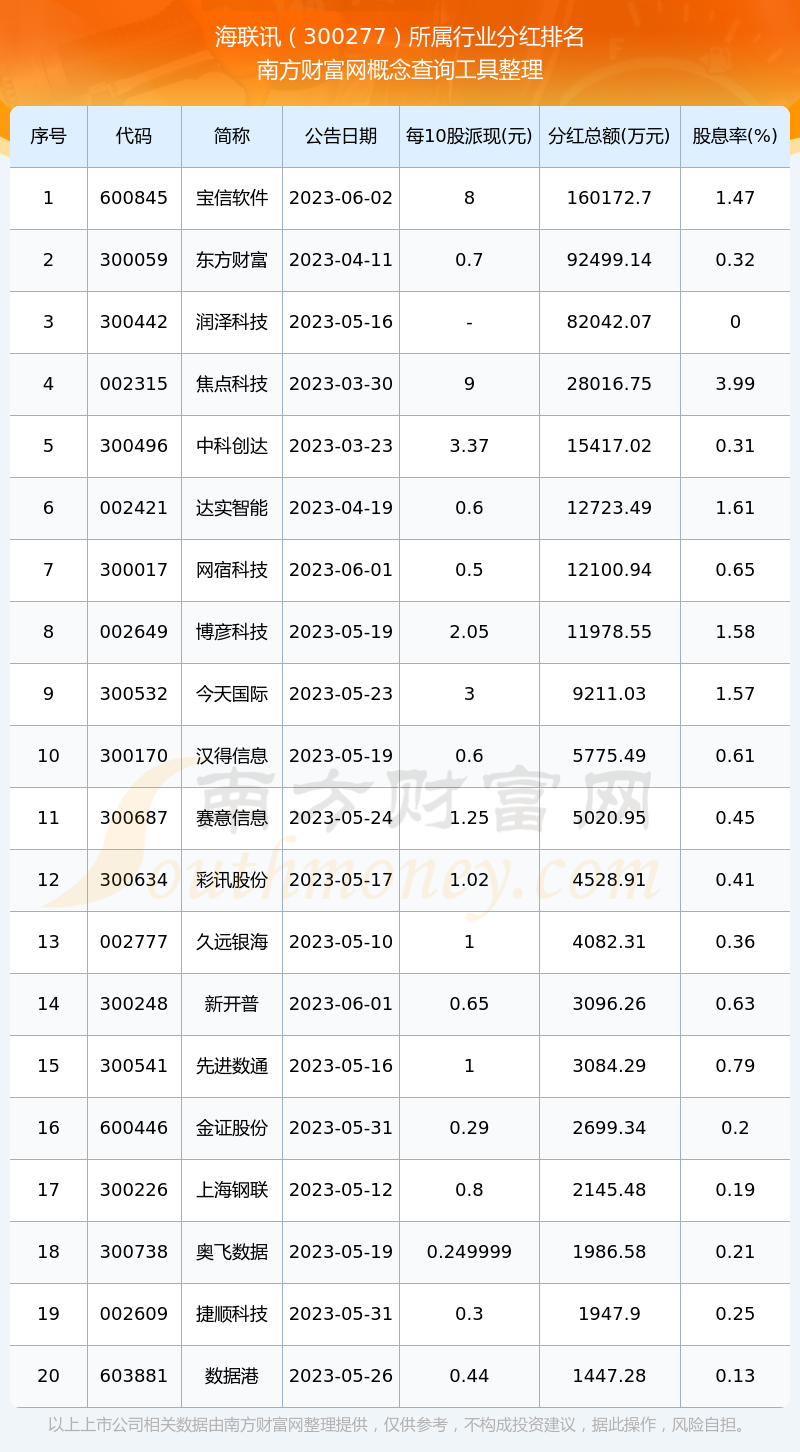 二、海聯(lián)訊300277行業(yè)分紅排名