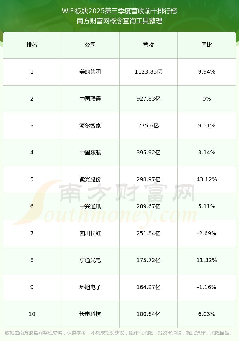 按照南方財(cái)富網(wǎng)概念查詢工具統(tǒng)計(jì),該股所屬板塊為WiFi板塊,該板塊共有76只股票,康希通信2025第三季度營收在該板塊中排名為第58名,該板塊2025第三季度營收排名前十的股票如下表: