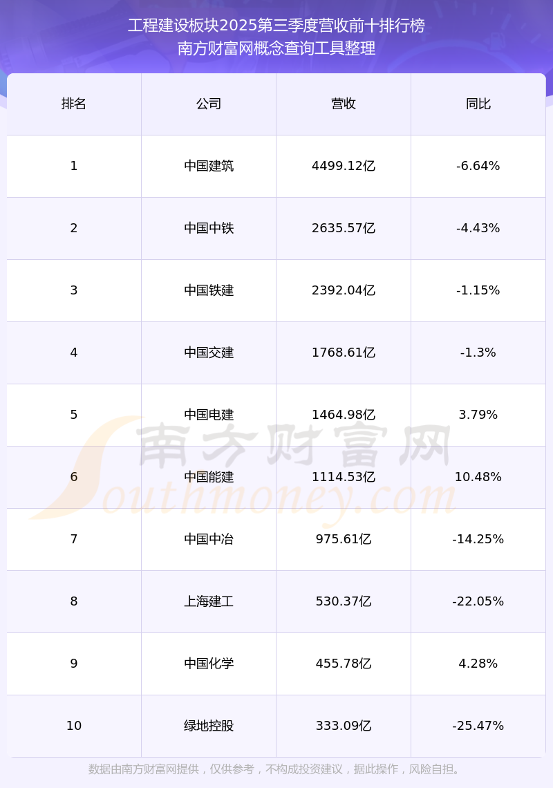 按照南方財富網(wǎng)概念查詢工具統(tǒng)計,該股所屬板塊為工程建設(shè)板塊,該板塊共有139只股票,隧道股份2025第三季度營收在該板塊中排名為第26名,該板塊2025第三季度營收排名前十的股票如下表: