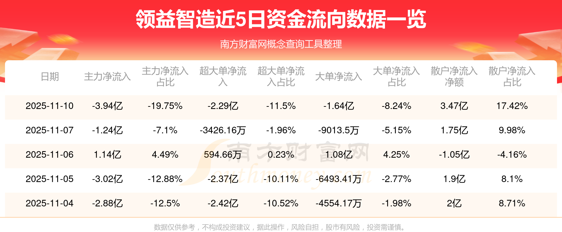 11月10日消息,領(lǐng)益智造11月10日主力資金凈流出3.94億元,超大單資金凈流出2.29億元,大單資金凈流出1.64億元,散戶資金凈流入3.47億元。