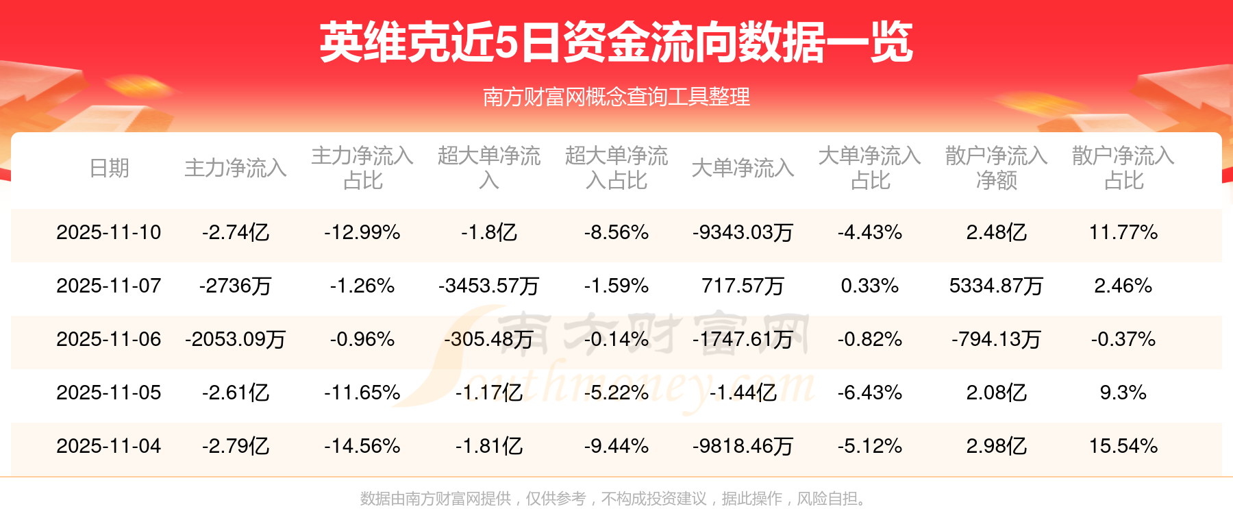 11月10日消息,英維克主力資金凈流出2.74億元,超大單資金凈流出1.8億元,散戶資金凈流入2.48億元。
