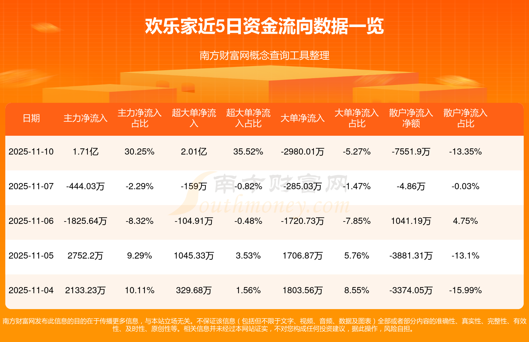 11月10日消息,歡樂家資金凈流入1.71億元,超大單資金凈流入2.01億元,換手率8.67%,成交金額8.18億元。