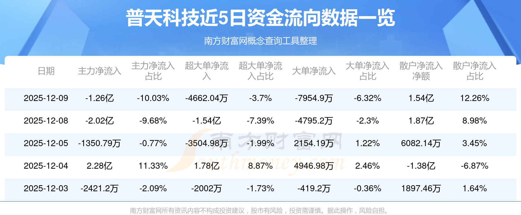 12月9日消息,普天科技資金凈流出1.26億元,超大單資金凈流出4662.04萬元,換手率6.14%,成交金額12.58億元。