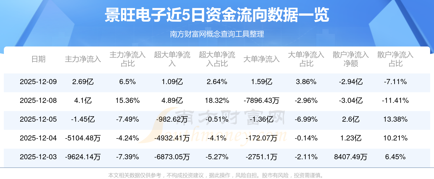 近5日資金流向一覽見下表:
