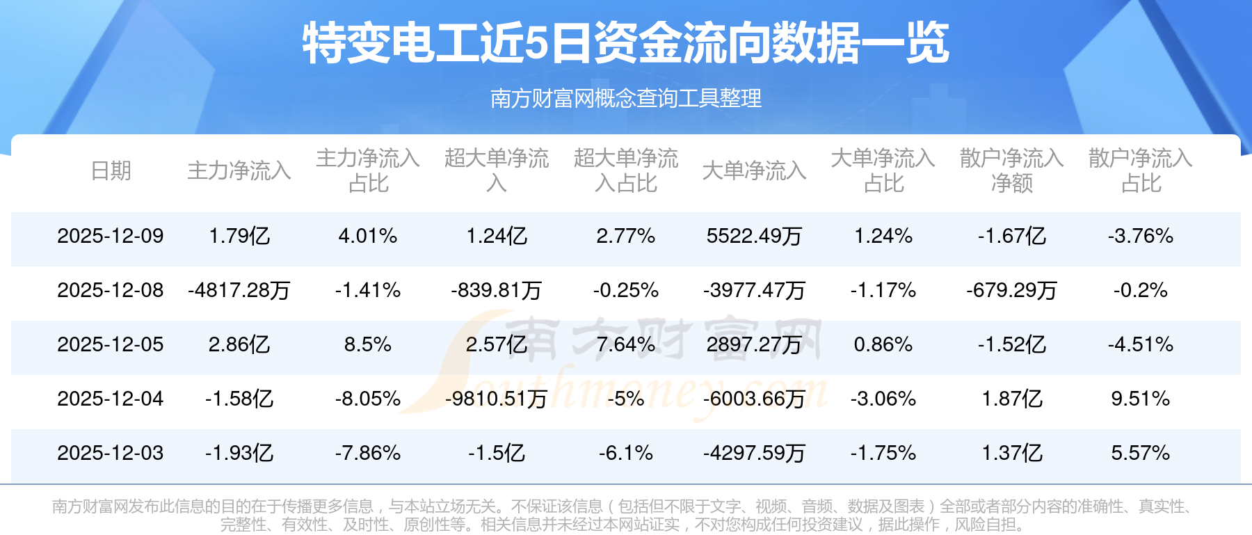 資金流向數(shù)據(jù)方面,12月9日主力資金凈流流入1.79億元,超大單資金凈流入1.24億元,大單資金凈流入5522.49萬元,散戶資金凈流出1.67億元。
