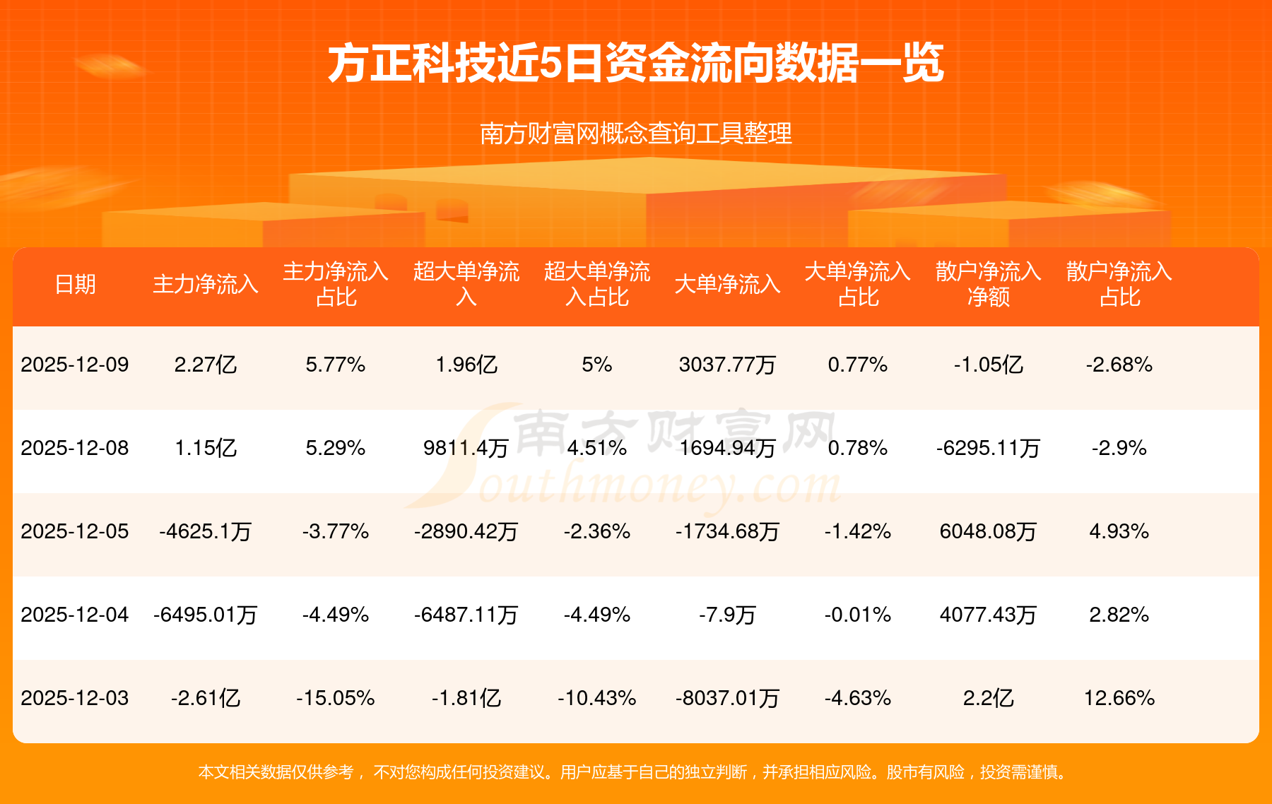 資金流向數(shù)據(jù)方面,12月9日主力資金凈流流入2.27億元,超大單資金凈流入1.96億元,大單資金凈流入3037.77萬元,散戶資金凈流出1.05億元。