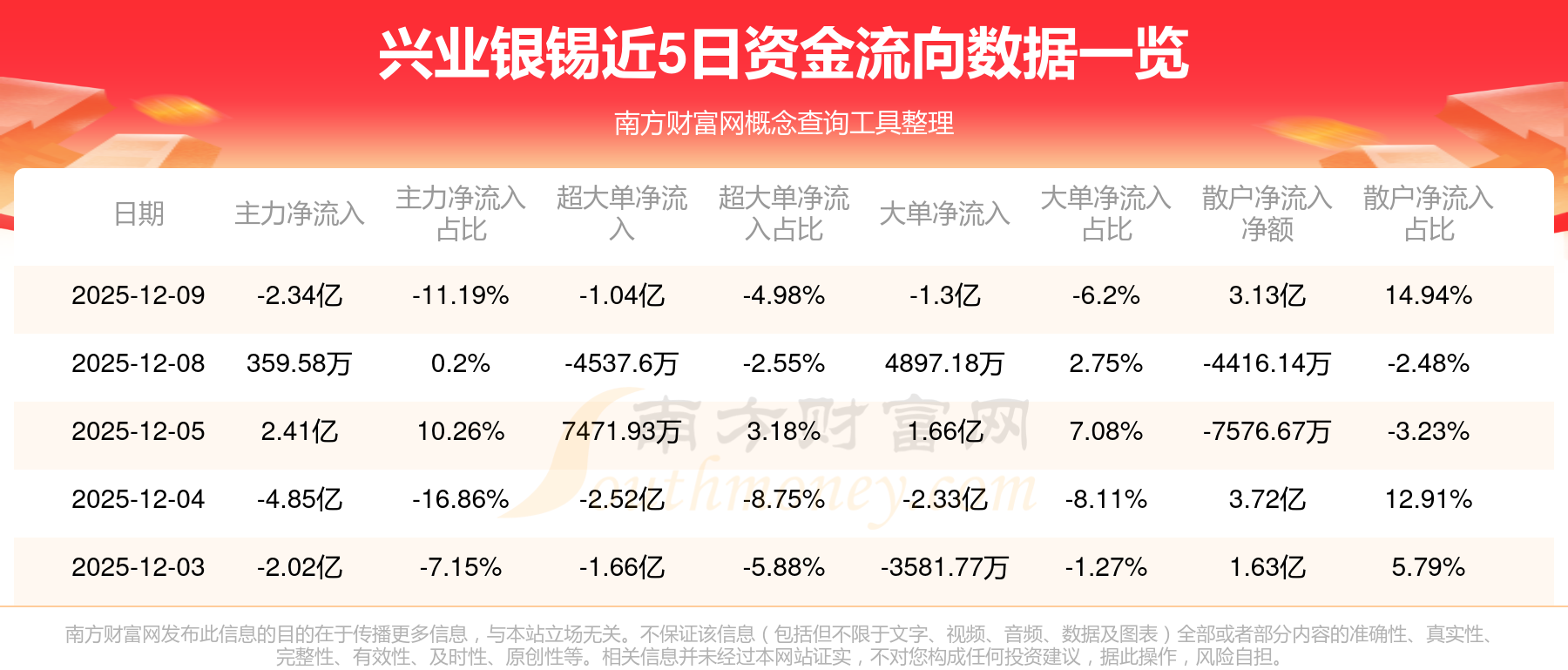 12月8日,興業(yè)銀錫(000426)開(kāi)盤(pán)報(bào)35.23元,截至下午三點(diǎn)收盤(pán),該股跌1.3%,報(bào)33.900元,3日內(nèi)股價(jià)下跌4.66%,總市值為601.94億元。