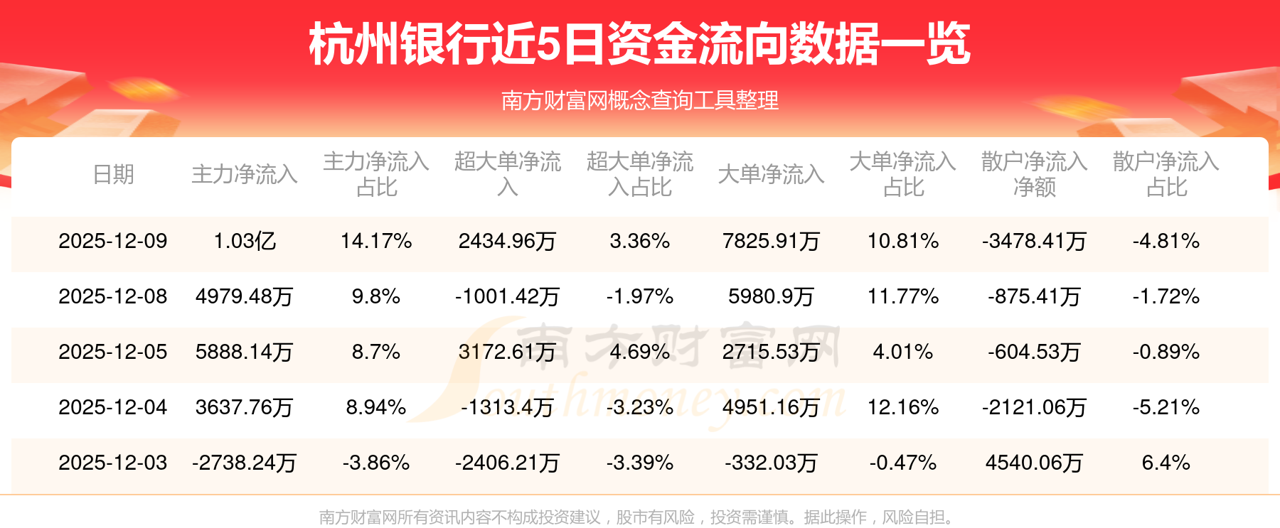 近5日資金流向一覽見下表: